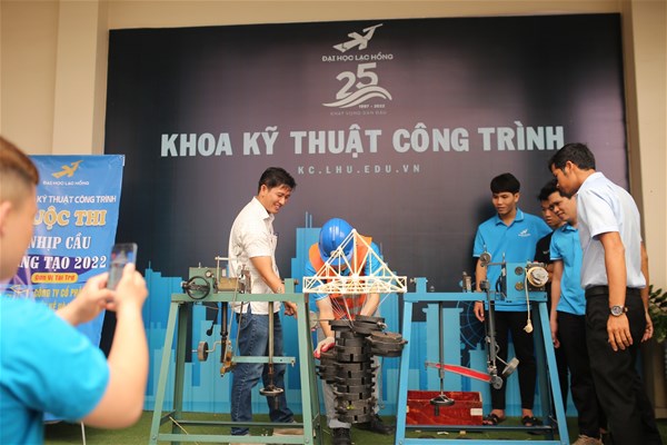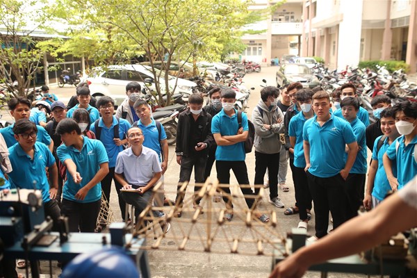 The organizing committee will score 03 factors: Structural aesthetics: accounting for 10% of the score, Presentation: Each team will prepare a presentation within 03 minutes to present the structure made, the presentation will be scored by the Jury, accounting for 20% of the score and Practice: Teams load in the middle of the span and gradually increase the load until the structure is destroyed, accounting for 70% of the points.