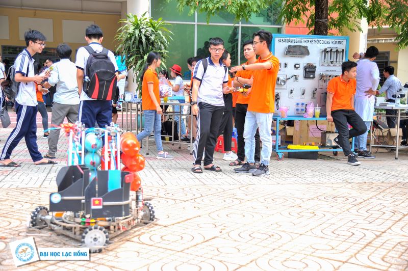 Trong một khuôn viên nho nhỏ, những gian hàng giới thiệu và trưng bày các sản phẩm công nghệ khác nhau của 22 ngành nghề đang đào tạo tại Đại học Lạc Hồng có dịp được phô diễn. Nhiều bạn học sinh nam rất thích thú và tìm hiểu cách chế tạo những chú robot thông minh điều khiển từ xa, những bot chat sử dụng trí tuệ nhân tạo,…là những giá trị cốt lõi đang được đào tạo tại Khoa Công nghệ thông tin và Khoa Cơ điện - Điện tử của Trường Đại học Lạc Hồng.