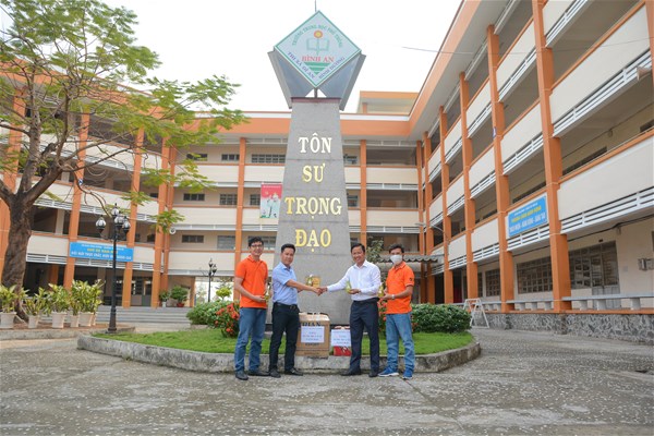 Lãnh đạo nhà Trường trao tặng nước rửa tay cho các trường THPT tỉnh Đồng Nai