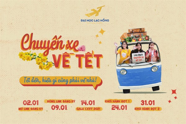 Không để các bạn chờ lâu nữa, Chuyến xe về Tết 2021 đã chính thức trở lại rồi đây! Nếu các bạn sinh viên chưa biết thì Chuyến xe về Tết là chương trình thường niên của LHU, đã được thực hiện trong 2 năm gần đây là 2019, 2020 với mục đích hỗ trợ vé xe và tặng quà cho các sinh viên về quê đón Tết đó.