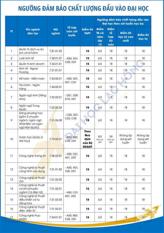 Ngày 17/8/2021, PGS.TS Nguyễn Vũ Quỳnh, Phó Hiệu trưởng Trường Đại học Lạc Hồng phụ trách công tác Tuyển sinh, cho biết Hội đồng Tuyển sinh của Trường Đại học Lạc Hồng chính thức công bố ngưỡng đảm bảo chất lượng đầu vào Đại học với phương thức xét tuyển bằng kết quả thi THPT và xét tuyển bằng học bạ năm 2021 cho 17 ngành đào tạo trình độ Đại học chính quy.