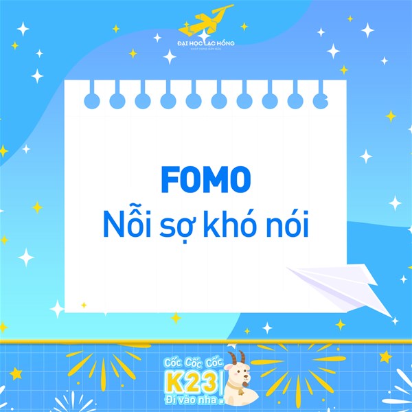 Hội chứng sợ bỏ lỡ là một nỗi sợ con người sợ bỏ lỡ điều gì đó trong cuộc sống. Quay lại cuộc sống đại học, chúng ta sẽ đối mặt với nhiều FOMO trong cuộc sống. Hôm nay là chung kết cuộc thi X mà mai thi rồi, phải ngủ sớm thôi. Nhưng không coi thì bỏ lỡ mất thông tin hay của trận đấu.