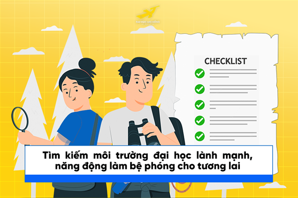 Sau khi lựa chọn được ngành học yêu thích, bạn có thể lập danh sách các ngôi trường tiềm năng có đào tạo ngành đó, tham khảo review từ các bạn cựu học sinh của ngôi trường đó, các câu lạc bộ, các lợi ích dành cho sinh viên, cơ sở vật chất,... để chắc chắn rằng đó là một môi trường phù hợp cho sự phát triển và trau dồi bản thân của bạn.