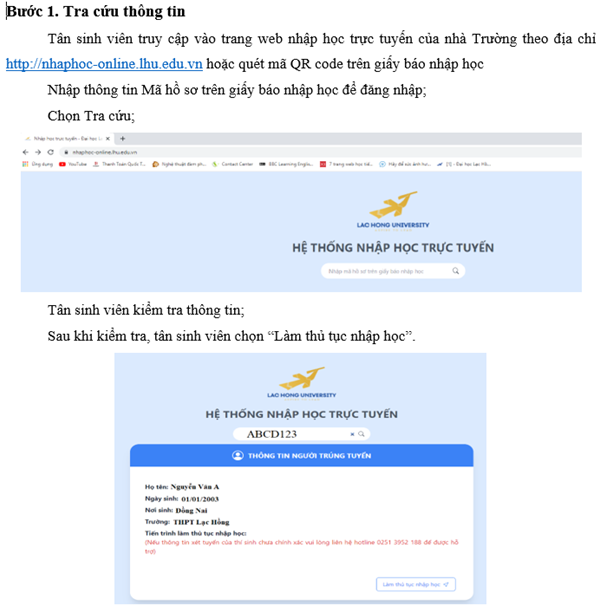 Hướng dẫn nhập học trực tuyến tại Đại học Lạc Hồng