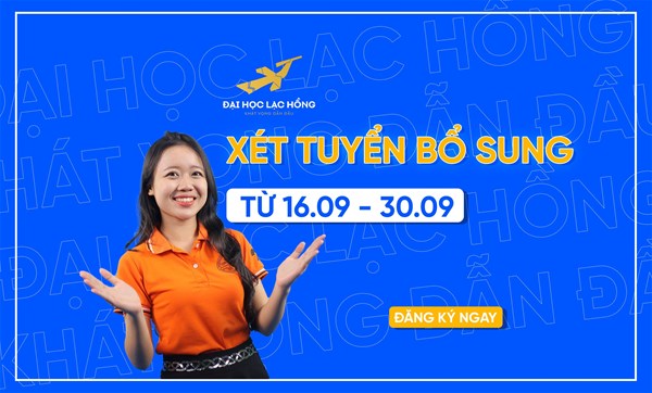 Hội đồng tuyển sinh Trường Đại học Lạc Hồng chính thức thông báo xét tuyển bổ sung, ưu tiên cho các thí sinh vì lý do khách quan chưa trúng tuyển vào đúng ngành học yêu thích. Thời gian nhà trường bắt đầu tiếp nhận đăng ký xét tuyển bổ sung: Từ ngày 22/9/2022 đến ngày 30/9/2022.