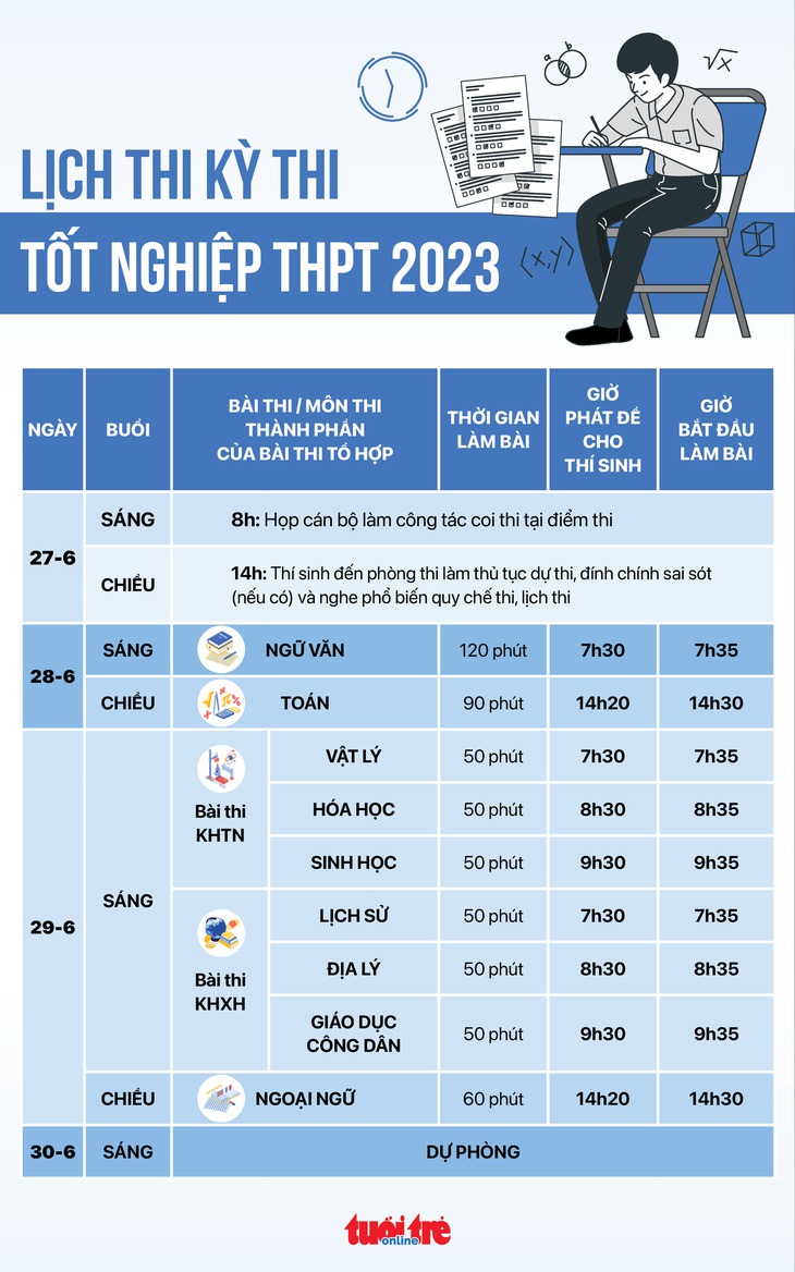 Từ ngày 27/6/2023 đến ngày 29/6/2023: Thí sinh làm thủ tục và thi tốt nghiệp THPT năm 2023.