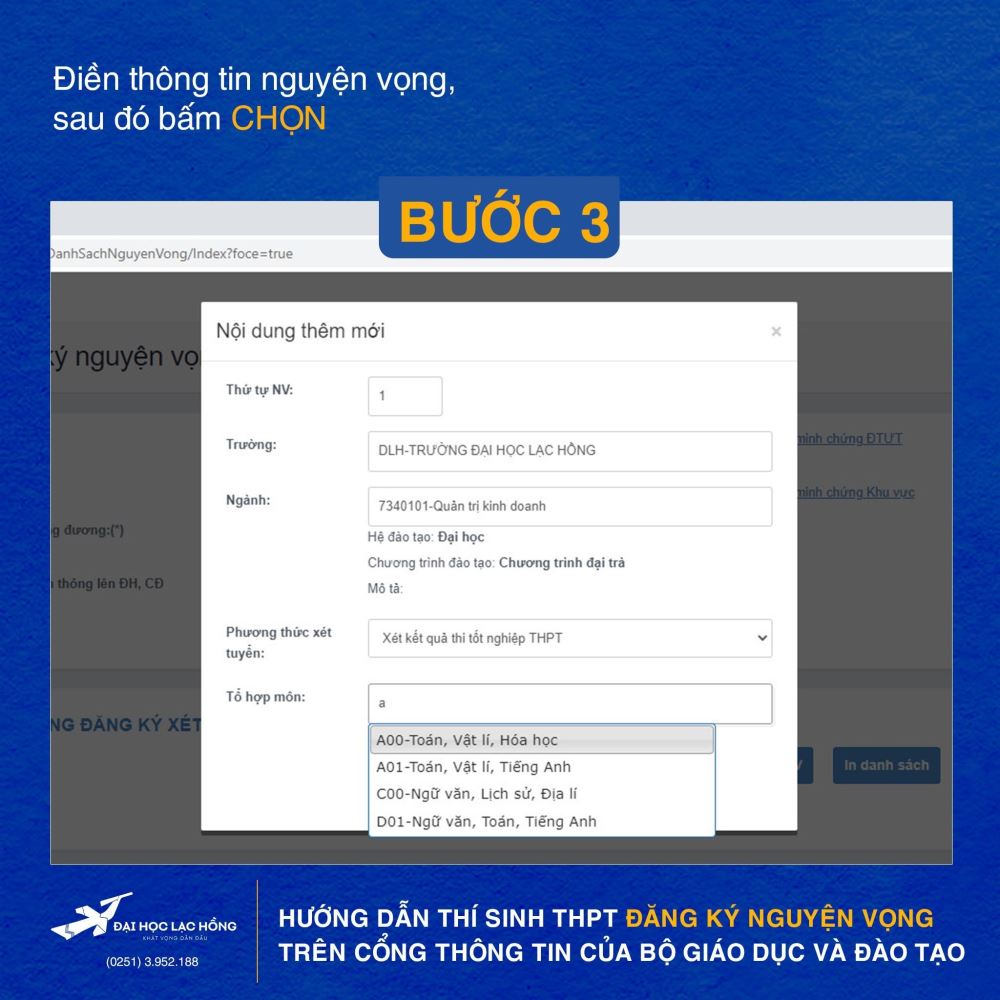Bước 3: Điền nội dung đăng ký nguyện vọng