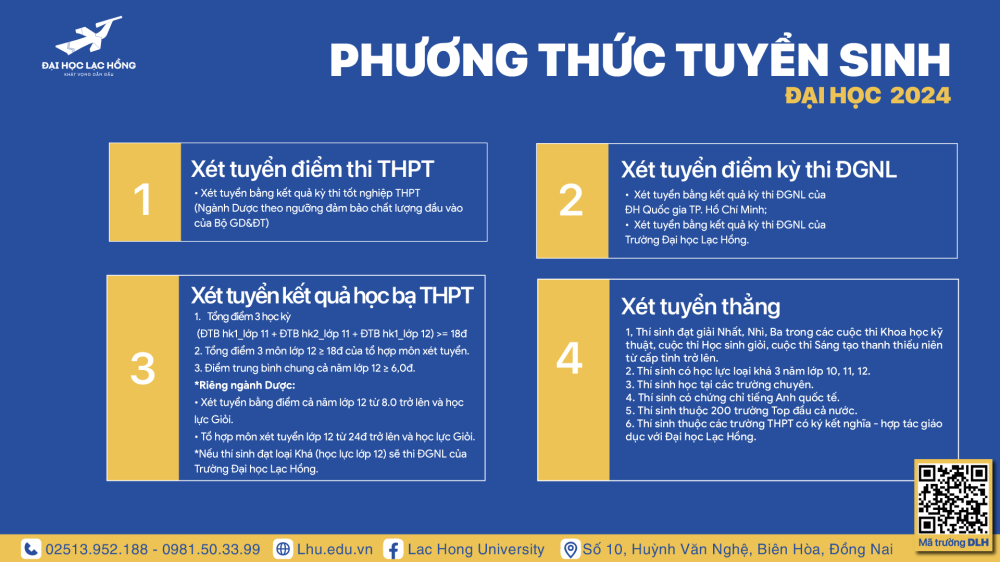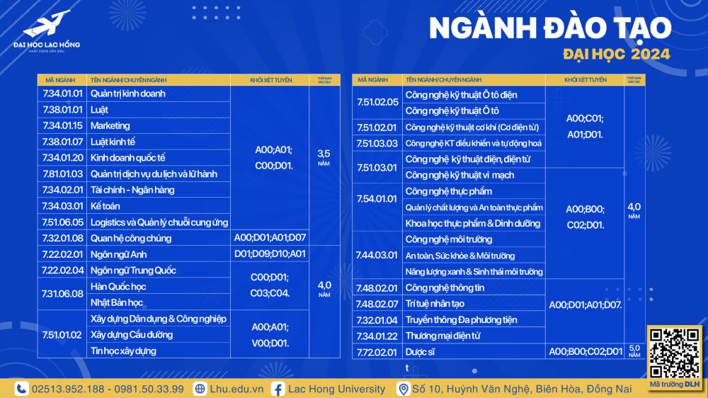 Năm 2024, Trường Đại học Lạc Hồng tuyển sinh 26 ngành hệ đại học chính quy