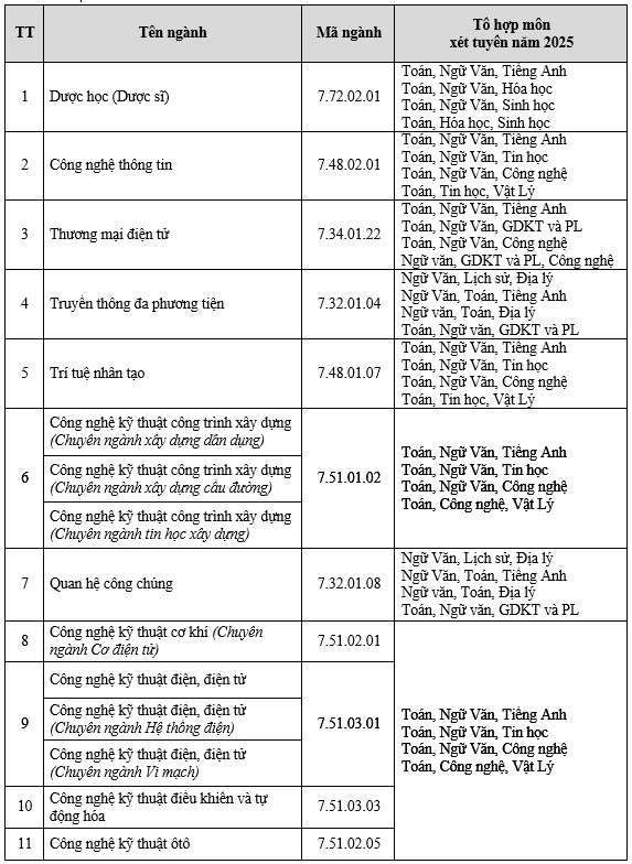 • - Xét tuyển theo kết quả thi tốt nghiệp THPT 2025 do Bộ GDĐT tổ chức.