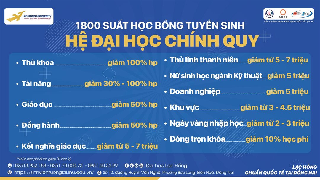 Đại học Lạc Hồng công bố ngưỡng đảm bảo chất lượng đầu vào đại học và học bổng “khủng” năm học 2025 - 2026