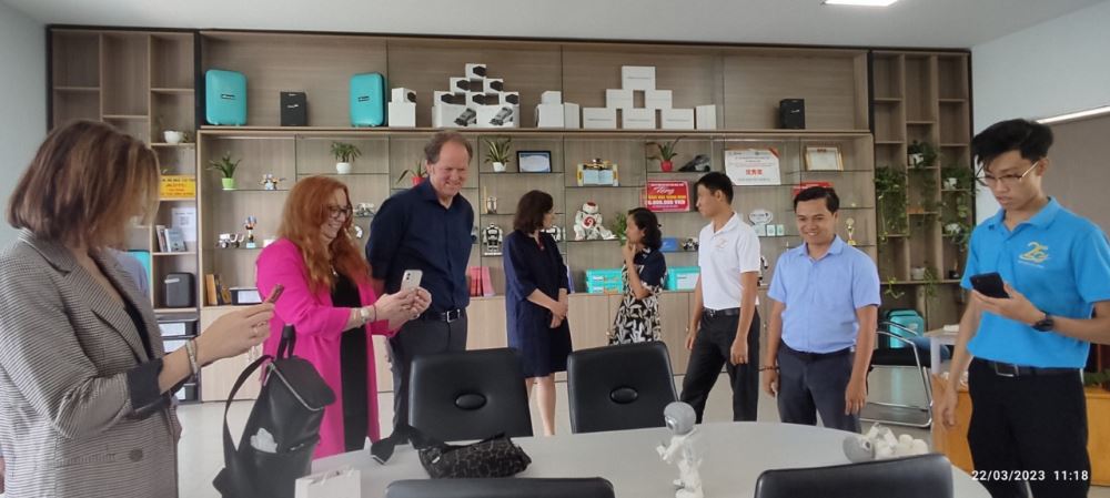 Sau buổi tọa đàm đoàn Đại học Capilano còn có chuyến tham quan các phòng là thế mạnh của trường như Phòng Media, Phòng Lab và Phòng AI. Qua chuyến tham quan phía đoàn Đại học Capilano rất hào hứng khi được trải nghiệm qua các mô hình, thuyết trình các dự án từ sinh viên tại Phòng AI cũng như trải nghiệm thực tế tại phòng Media.