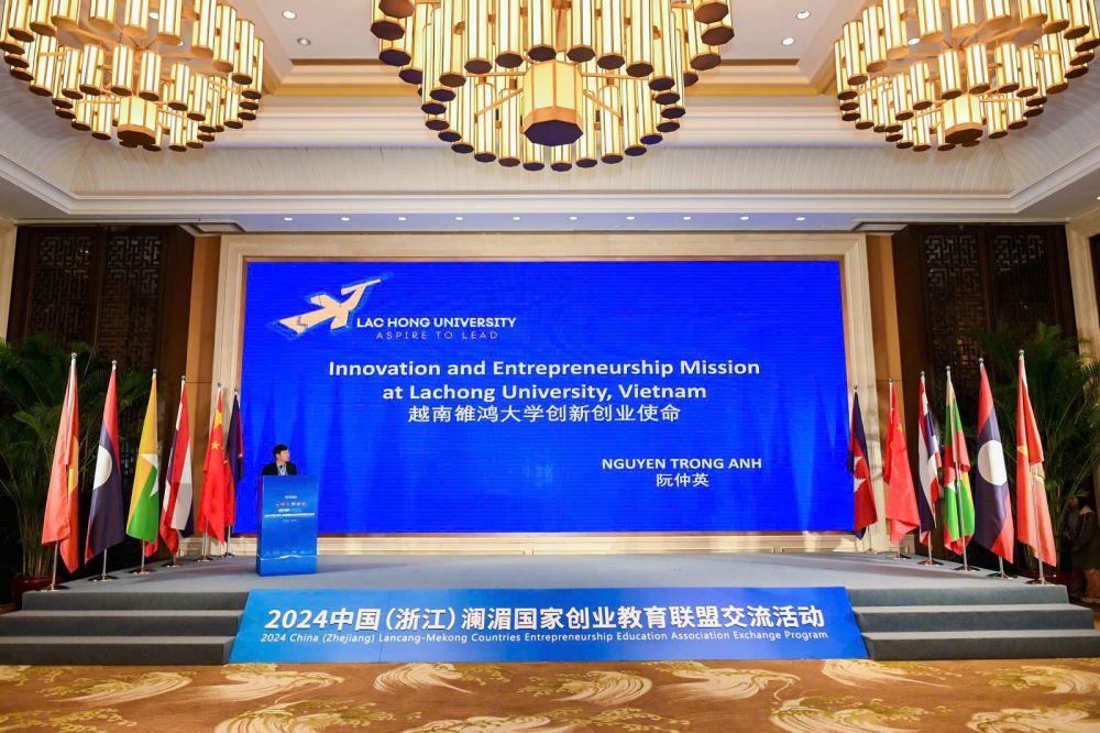 Từ ngày 19 đến 21/12, Đại học Lạc Hồng (LHU) đã tham gia Diễn đàn Giáo dục Khởi nghiệp các nước Lan Thương-Mekong 2024, diễn ra tại thành phố Hàng Châu, Trung Quốc. Đây là sự kiện quốc tế quan trọng, quy tụ đại diện các trường đại học, tổ chức giáo dục, doanh nghiệp và dự án khởi nghiệp từ các quốc gia trong khu vực.Với tư cách là thành viên chính thức của LMCEEA, LHU đã cử hai đại diện tham dự diễn đàn lần này gồm NGƯT. TS. Nguyễn Thị Thu Lan, Phó Hiệu trưởng Nhà trường, và TS. Nguyễn Trọng Anh, Phó Giám đốc Trung tâm Nghiên cứu Khoa học và Ứng dụng.