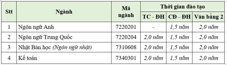 - Đại học - Đại học (Đại học văn bằng 2): Xét tuyển điểm trung bình tích lũy bằng đại học 1, không phân biệt hệ đào tạo.