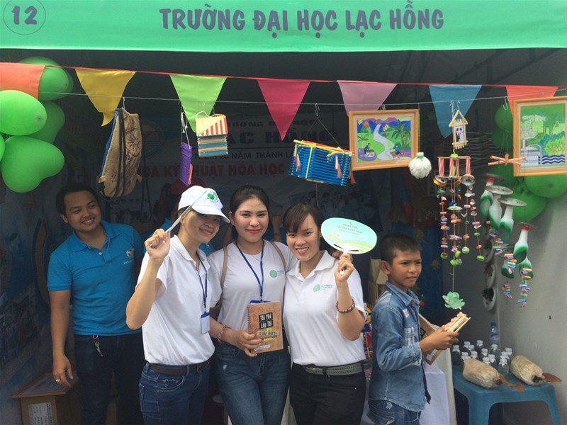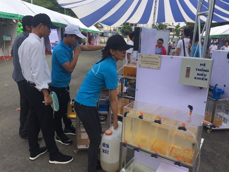 In alignment with these activities, under the direction of the Board of Directors at Lac Hong University, the Faculty of Chemical and Environmental Engineering participated in the exhibition, showcasing a booth with waste recycling products and technology models created by students, such as wastewater treatment models, air pollution control models, and compost production models. These models simulate a miniature environmental treatment process, complete with features similar to real-world processes.