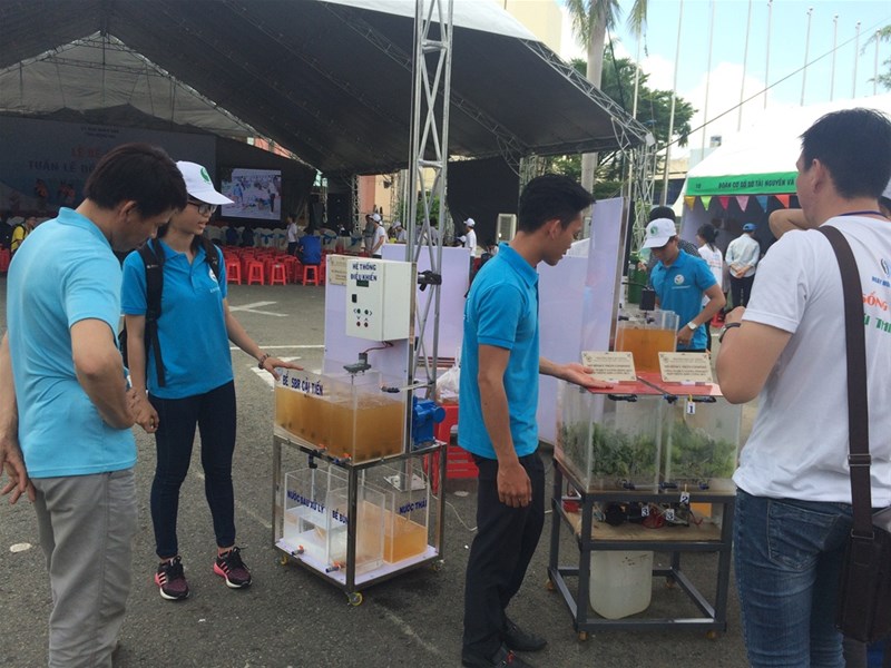The recycled products and experimental models created by the students attracted a large number of visitors interested in discussing environmental topics. Additionally, they garnered the attention of leaders from the Department of Natural Resources and Environment, businesses, and HTV reporters, who conducted interviews and reported on the event.