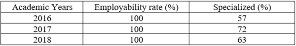 Table 5. The employability rate of graduates after one year (cohort 2016, 2017 and 2018)