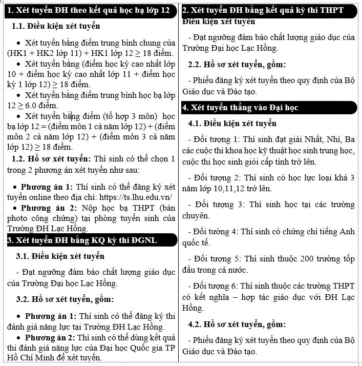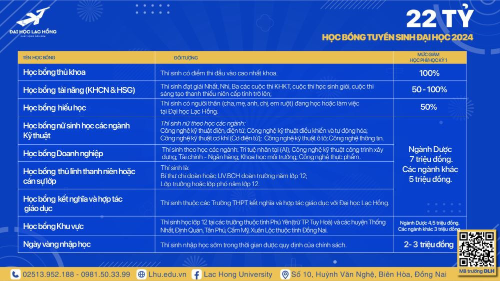 => Còn chần chừ gì không đăng ký xét tuyển đại học TẠI ĐÂY để nhận ngay những ưu đãi cực kỳ hấp dẫn tại Đại học Lạc Hồng.