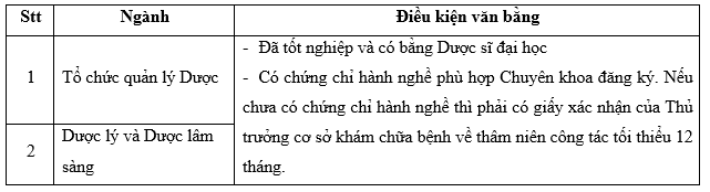 • 2. Điều kiện về văn bằng, chứng chỉ dự tuyển trình độ chuyên khoa 1