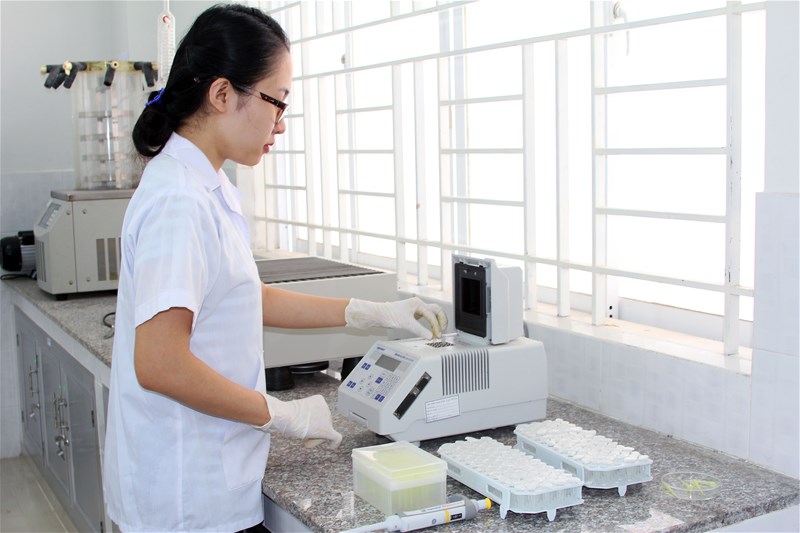 Phòng thí nghiệm Sinh học Phân tử (Laboratory of Molecular Biotechnology) phục vụ cho việc giảng dạy, nghiên cứu khoa học của giảng viên và sinh viên; đồng thời phục vụ các đề tài nghiên cứu và chuyển giao công nghệ của Khoa và nhà trường. Sinh viên được trang bị kiến thức cách sử dụng thành thạo kính hiển vi; Tự làm tiêu bản để quan sát và phân biệt tế bào eukaryote và prokaryote; Quan sát quá trình nguyên phân của tế bào; quan sát và định tính thành phần hữu cơ của tế bào; quá trình quang hợp, hô hấp ở cây xanh; sự vận chuyển nước qua màng tế bào (ưu trương, nhược trương, đẳng trương); và Các thao tác kỹ thuật Công Nghệ Sinh Học hiện đại: tách chiết, điện di, nhân gene bằng phương pháp PCR; thiết kế vector tái tổ hợp, chuyển gene ngoại lai vào tế bào chủ E. coli (tế bào vi khuẩn) phục vụ mục đích tạo dòng, làm thư viện DNA, v...v, củng cố thêm kiến thức về Sinh học Phân tử.