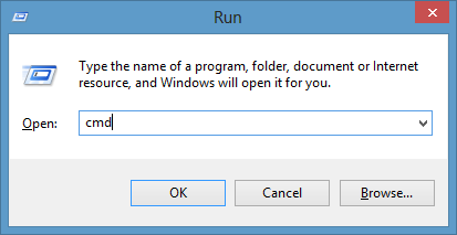 Trước tiên, bạn có thể vào Start >> Gõ CMD vào ô tìm kiếm hoặc vào Run (Tổ hợp phím Windows + R) >> Nhập CMD và Enter.