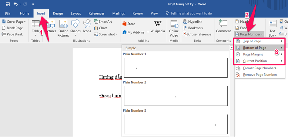 Cách đánh số trang cơ bản trong Word từ 2007 đến 2010/2013/2016