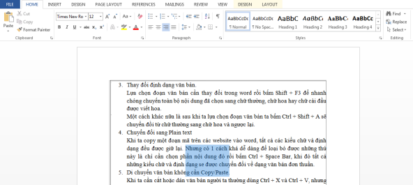 Bạn có thể chọn toàn bộ một đoạn văn bản khi kích chuột trái 3 lần vào bất kì chỗ nào trong đoạn văn bản đó. Hoặc giữ phím Ctrl và bấm vào vị trí bất kì trong 1 câu để chọn câu đó ( Lưu ý: Câu đó được giới hạn bởi 2 dấu chấm ).