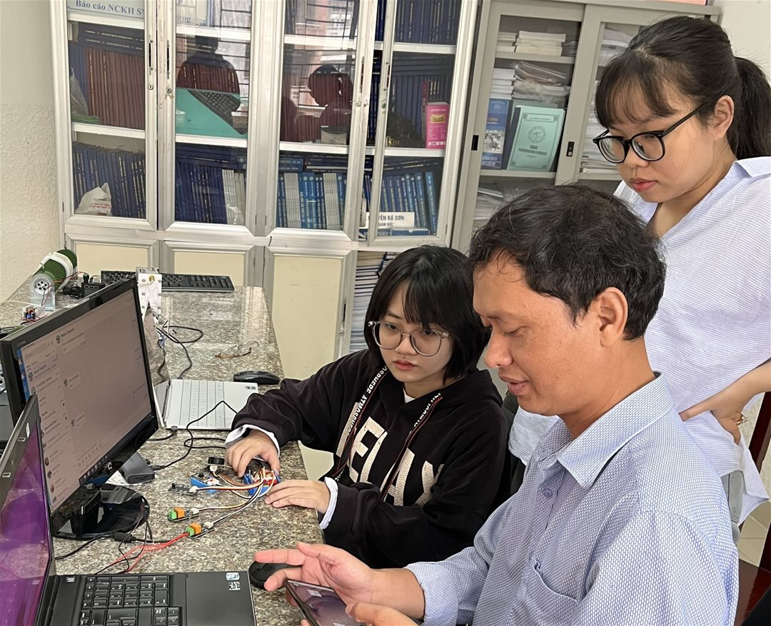 Năm thứ ba, Diễm Trinh có cơ hội thực tập sớm tại Trung tâm Nghiên cứu Khoa học và Ứng dụng của trường, dưới sự dìu dắt của thầy Long. Đây là môi trường lý tưởng để em tiếp cận các dự án thực tế và tham gia nhiều cuộc thi Khoa học Công nghệ.