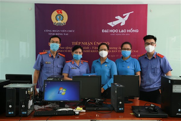 LHU on October 15 received 24 computers and 9 laptops donated from Dong Nai Provincial Department of Construction, Dong Nai Provincial Development and Investment Fund, Dong Nai Provincial People's Procuracy, Dong Nai Provincial Tax Department's Labor Union, and Dong Nai High School for the Sports Gifted.