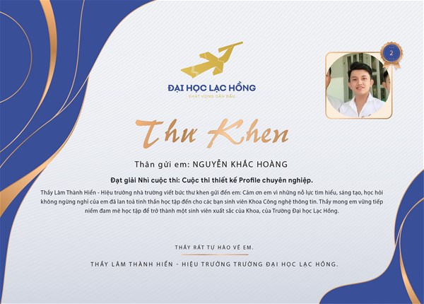 Faculty of Information Engineering Technology (IET) on November 22 announced the prizes of Professional Profile Design Contest which was launched early October 2. Accordingly, Bui Xuan Canh - second year student wins First prize worth 300,000 VND plus one permanent fully functional Canva account. Nguyen Khac Hoang and Nguyen Minh Thy take Second and Third places, respectively.