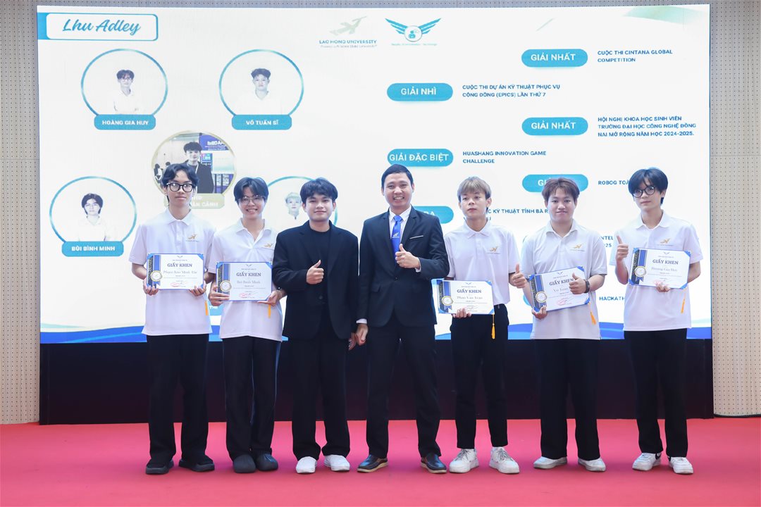 Team LHU Adley, under the guidance of Mr. Bui Xuan Canh, won multiple awards at programming and startup competitions. The members include Hoang Gia Huy, Bui Binh Minh, Vo Tuan Si, Phan Van Tran, and Pham Minh The – all outstanding students who demonstrated unity and perseverance in pursuing their passion for technology. A team representative shared: