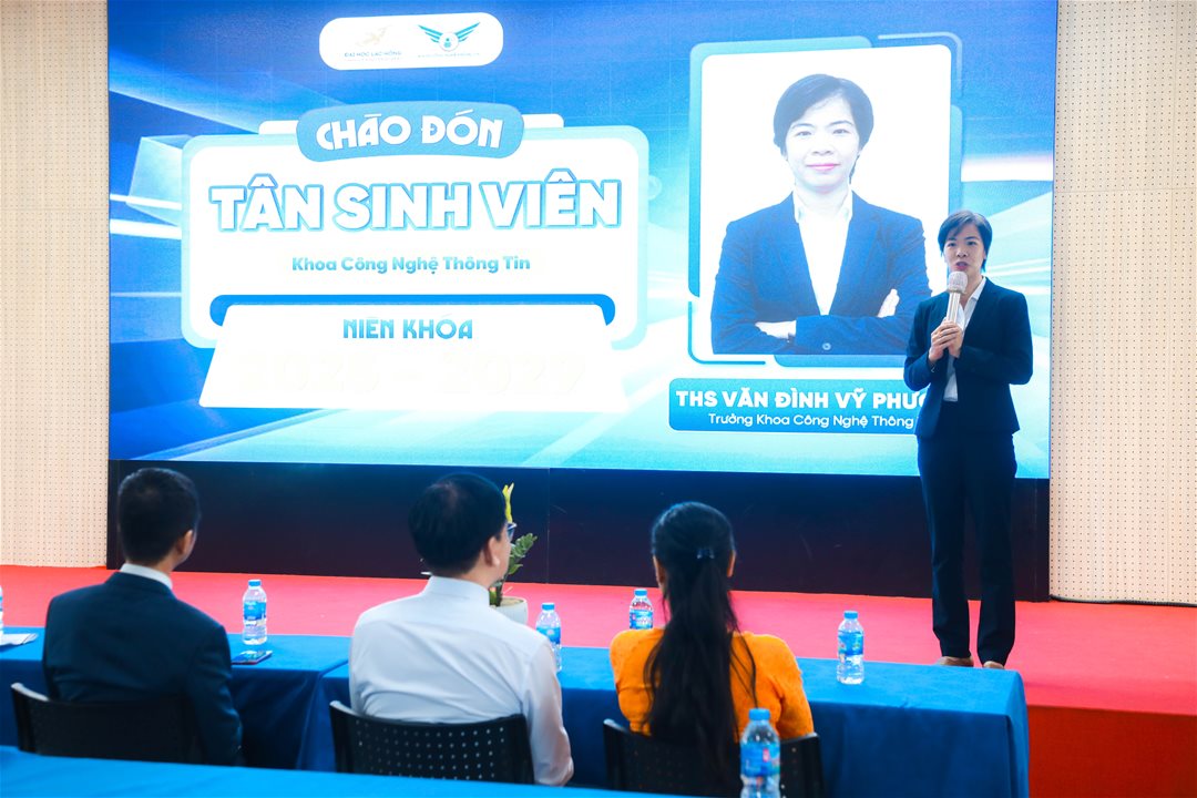 Opening the program, Ms. Van Dinh Vy Phuong – Dean of the Faculty of IT, extended her congratulations to all new students and shared insights on academic and personal development: