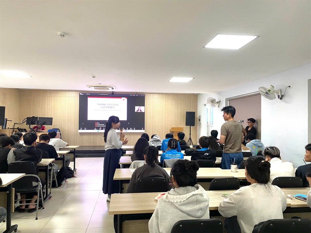The collaboration between Ms. Andrea Gonzales and Ms. Tran Thi Dieu Hien provided students with a highly international learning experience, harmoniously blending global academic knowledge with practical applications in Vietnam. Throughout the session, the two lecturers provided in-depth insights into the elements of the Marketing Mix (4P) model, its application in e-commerce business operations, and emerging trends in building personal brands on digital platforms.