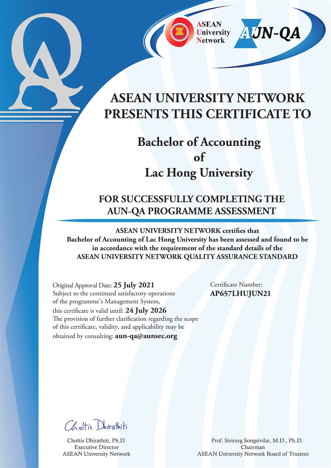 Để khẳng định chất lượng vượt trội, Đại học Lạc Hồng luôn đặt việc kiểm định chương trình đào tạo đạt chuẩn quốc tế AUN-QA (ASEAN University Network Quality Assurance) lên nhiệm vụ hàng đầu. Điều này không chỉ đảm bảo chương trình học đạt chuẩn khu vực mà còn trang bị cho sinh viên khả năng làm việc nhóm, liên kết hiệu quả với các nhóm ngành khác, và tự tin đảm nhiệm nhiều vị trí như chuyên viên kế toán, kiểm toán, tư vấn tài chính, hay thậm chí là Giám đốc tài chính (CFO) tại các doanh nghiệp trong nước và quốc tế.