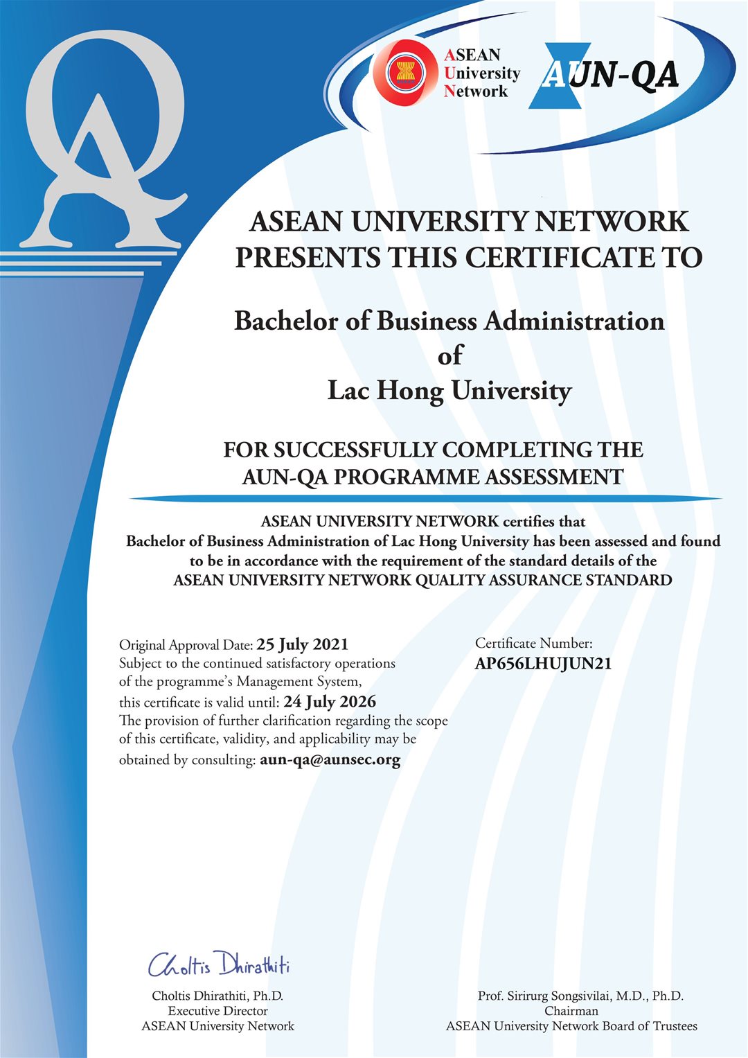 Đại học Lạc Hồng tự hào mang đến chương trình đào tạo Quản trị Kinh doanh chất lượng cao, định hướng trang bị cho sinh viên những kỹ năng thiết yếu để tự tin khởi nghiệp, quản lý và điều hành doanh nghiệp trong mọi môi trường kinh doanh. Chúng tôi cam kết tạo ra những nhà quản trị năng động, có khả năng tổ chức, điều phối chuyên nghiệp các công việc từ bán hàng, điều hành, giám sát đến tuyển dụng và quản lý sản xuất. Với mục tiêu nâng cao chất lượng giáo dục, Đại học Lạc Hồng luôn đặt việc kiểm định chất lượng chương trình đào tạo đạt chuẩn quốc tế AUN-QA (ASEAN University Network Quality Assurance) lên nhiệm vụ hàng đầu. Điều này khẳng định nỗ lực không ngừng của nhà trường trong việc cung cấp một môi trường học tập chất lượng cao, đáp ứng chuẩn mực khu vực và quốc tế.