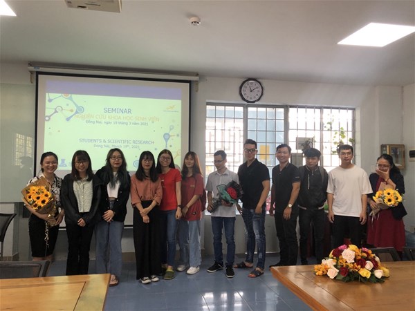 On March 19, 2021, the Faculty of Pharmacy celebrated a meeting “Scientific research seminar ” for last year students, who are doing studies in faculty. The participants included: Mr. Cao Van Du (vice dean of the faculty), Mr. Ho Dung Manh, Ms. Ngo Thi Xuan Quynh, lecturers and students.