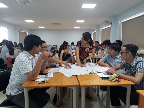 In this workshop, DSc. Truong Le Phuong, who is The manager of the Department of Examination and Quality Assurance, introduced useful digital tools and shared effective methods to design online courses and methods to conduct the lesson plan for combined learning. All lecturers participated in group activities in enjoyable atmosphere during the training period.