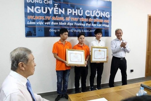 During the study process, I learned a lot of useful knowledge from the lecturers and supported related issues from the enthusiastic staff of the faculty. Those things make me very impressed. In particular, I had an excellent opportunity to carry out my graduation thesis with the guidance of Dr. Nguyen Van Tan - Dean of Faculty of AIE. I believe that he was the first person who inspired and laid the foundation for my passion for scientific research. I participated in the 2016 Scientific Research Student Award organized by the Ministry of Education and Training and won the 3rd prize with his guidance.