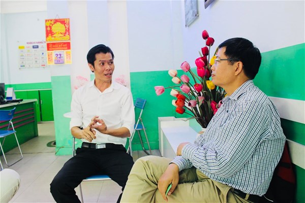 PhD Nguyen Van Tan – Dean of FAIE – discussed internship-related matters with Mr. Hoang Xuan Vinh at DatViet Tour – Binh Duong Branch.