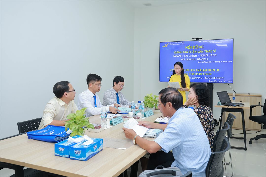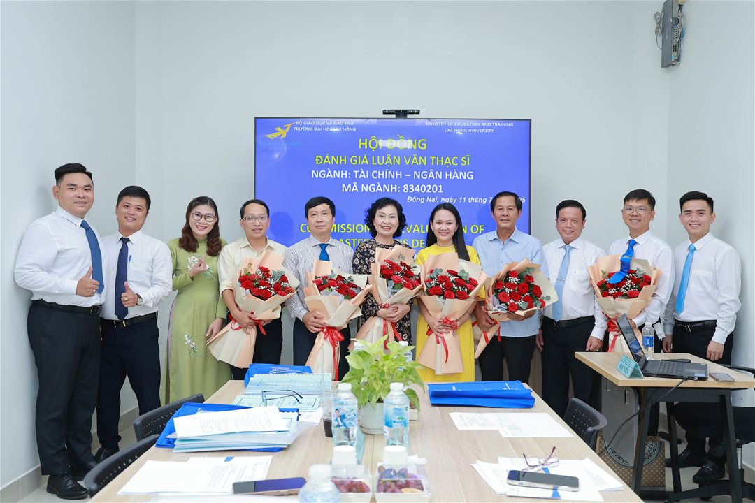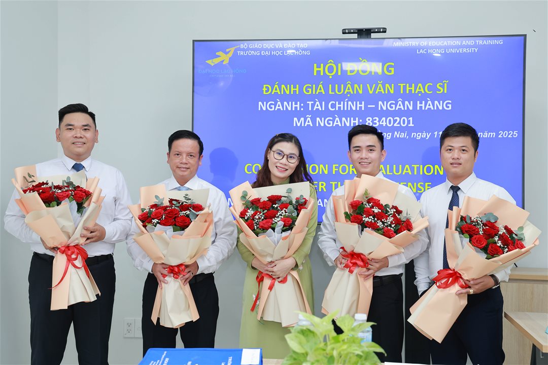 On July 11, 2025, at Room B107, Campus 1 of Lac Hong University, five students from the Finance and Banking programme successfully defended their master’s theses. The thesis defense took place in a formal and scholarly atmosphere, marking an important milestone in the students’ academic and research journey.