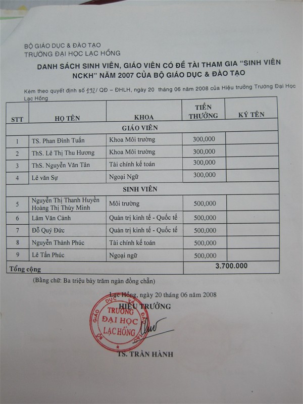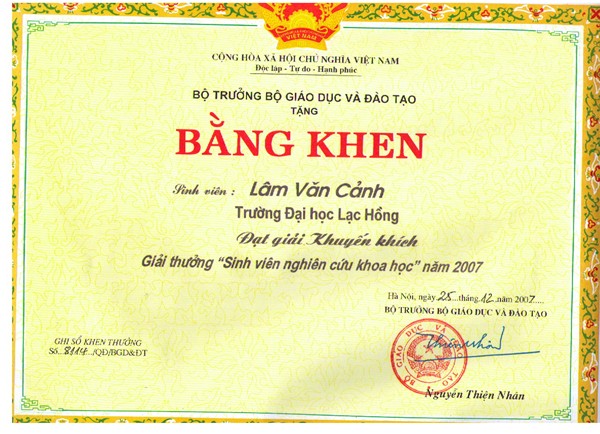 Nghiên cứu khoa học sinh viên cấp Bộ năm 2007