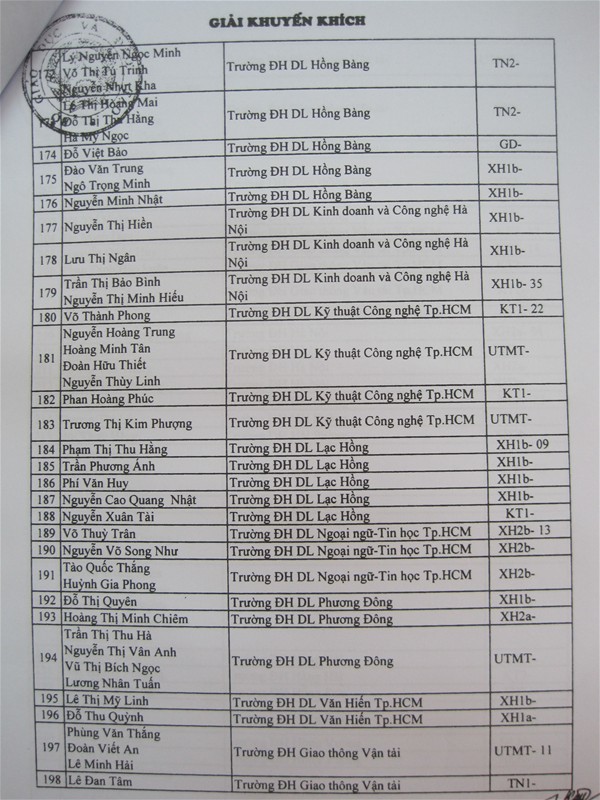 Giải thưởng sinh viên NCKH cấp Bộ năm 2016