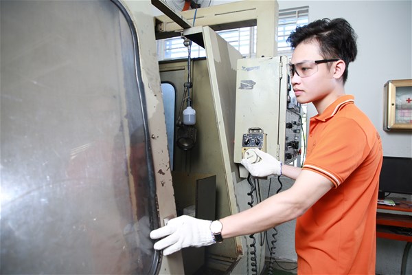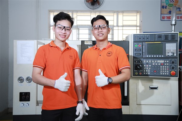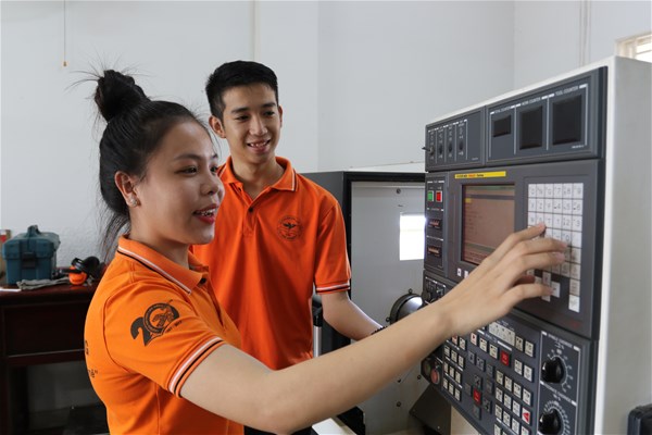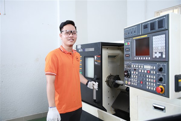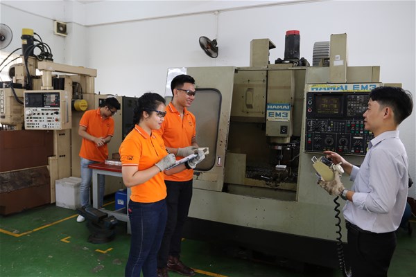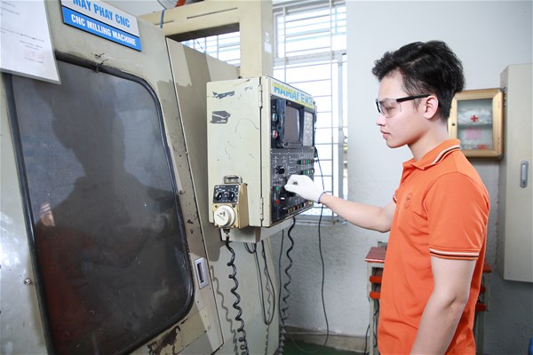 Sinh viên học thực hành trên máy CNC (gia công sản phẩm thực tế)